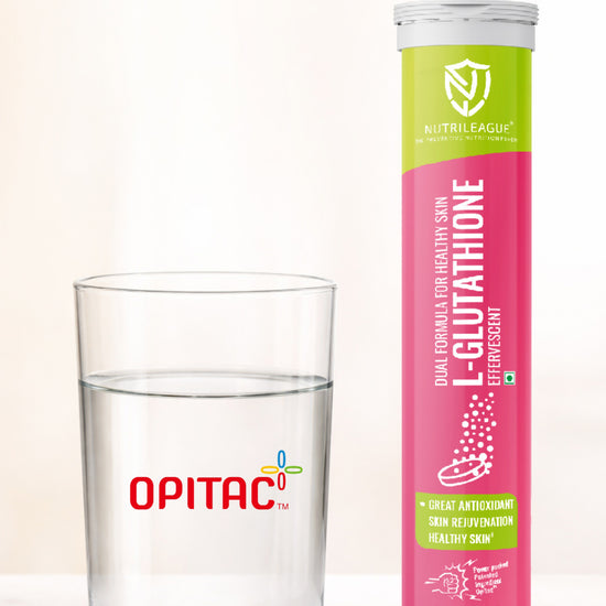 L - Glutathione (Opitac- A Patented L-glutathione) Effervescent Tablet with vitamin C For Men & Women | Dual Formula With Better Bioavailability | Best Skin Rejuvination | Power Antioxidant & Skin Whitning Formula | Your Pathway to Ageless Beauty